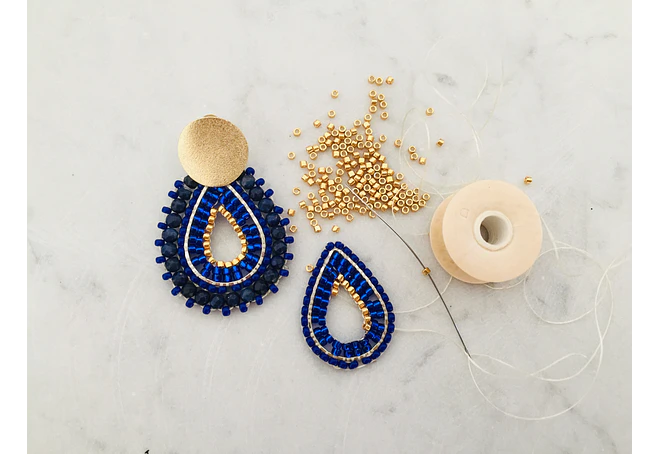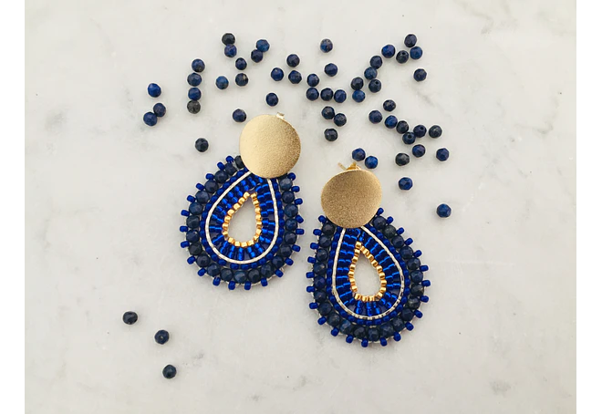 Aros tejidos a mano con delicas, rocailles Miyuki y piedras lapislázuli en su contorno
